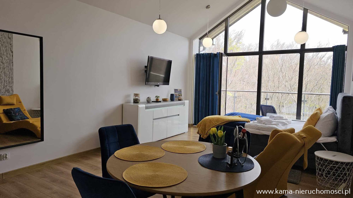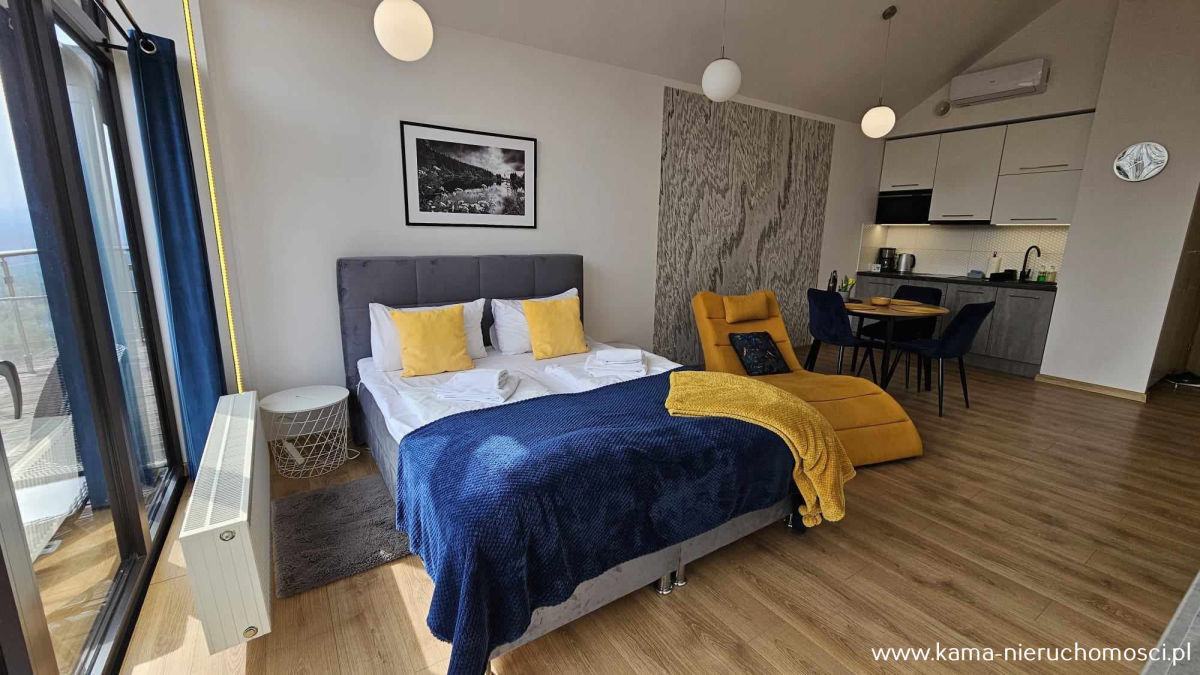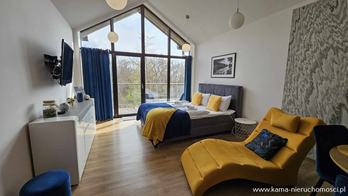 - pokój dzienny z częścią sypialną i aneksem kuchennym