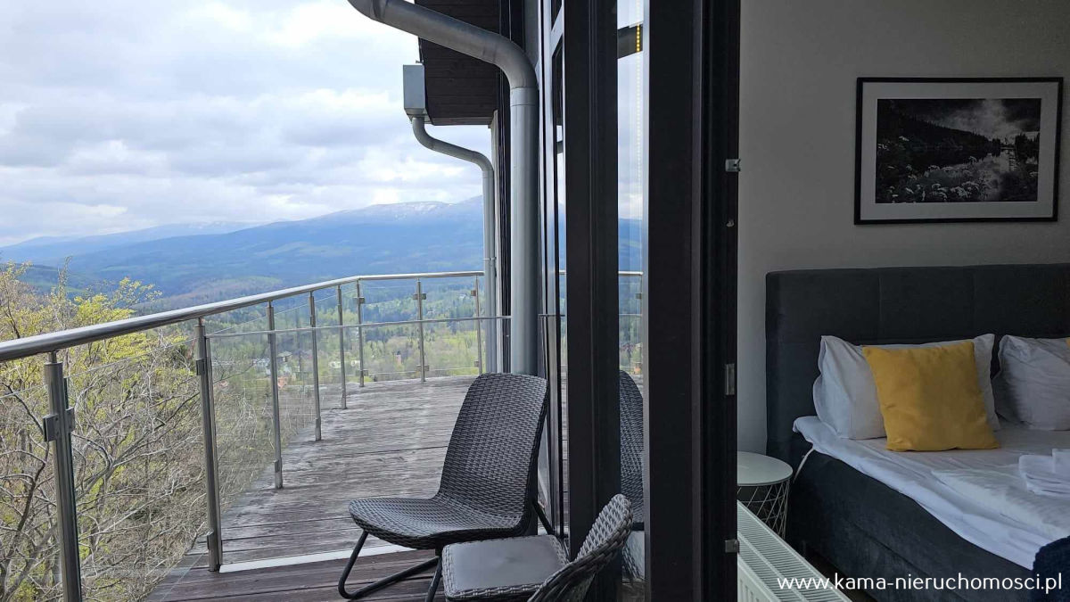 Kama Nieruchomości prezentuje Państwu komfortowy apartament o powierzchni 32.95m2 z tarasem z którego rozpościera się przepiękny widok na góry. Usytuowany na szóstym piętrze apartamentowca położonego w Szklarskiej Porębie.