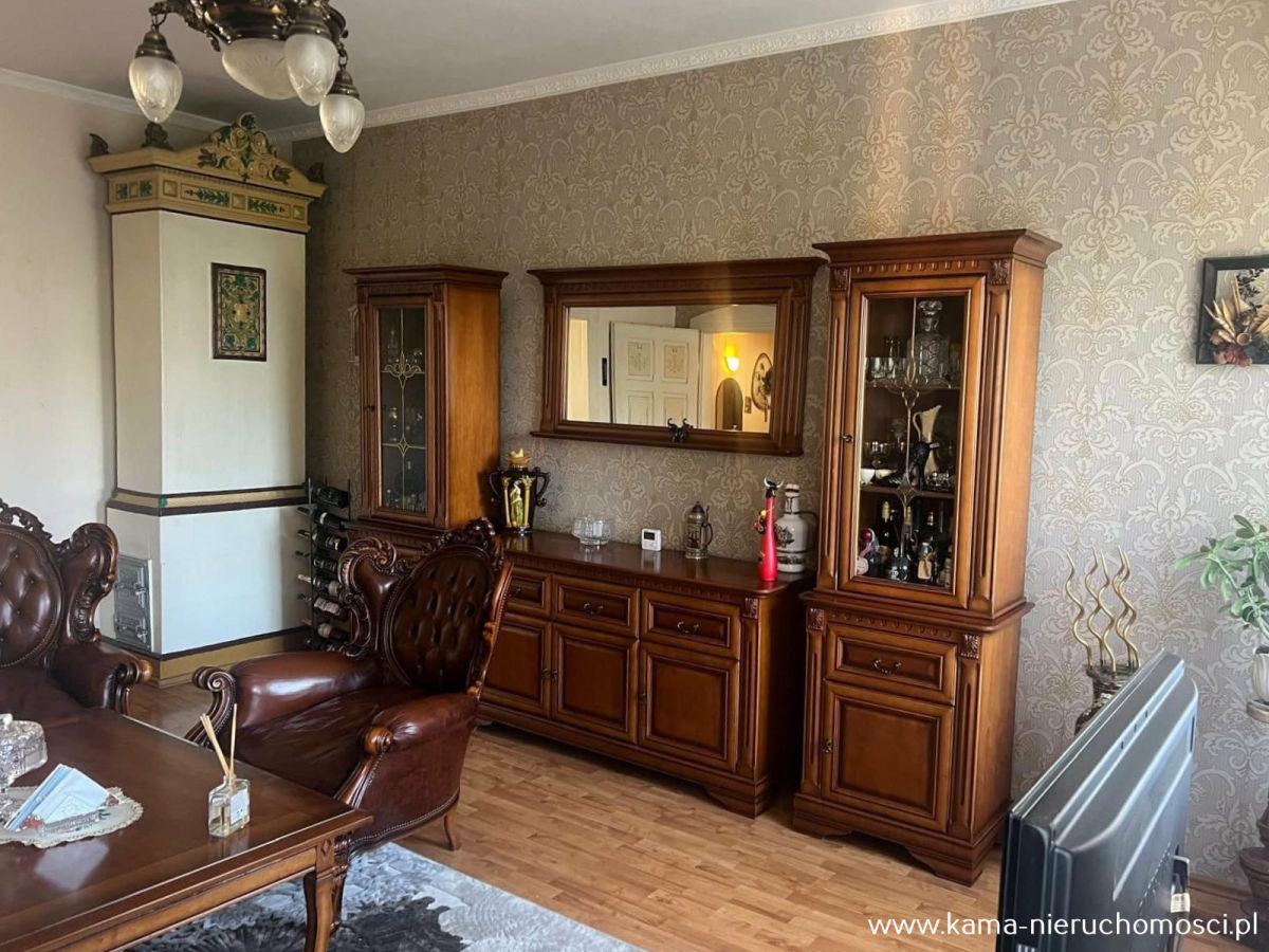 W mieszkaniu została zachowana oryginalna drewniana stolarka drzwiowa oraz piece kaflowe dla ozdoby.