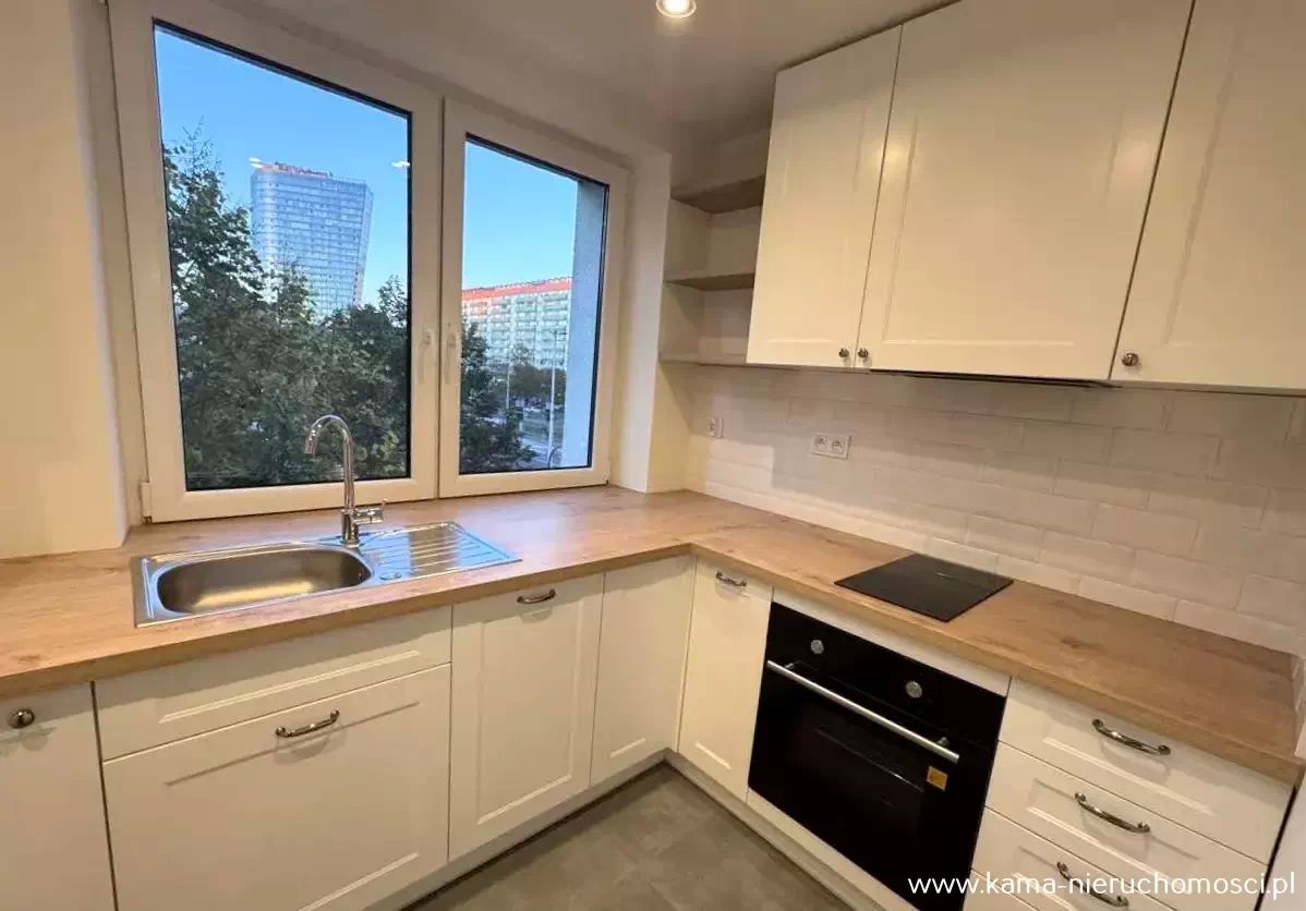 Mieszkanie jest po generalnym remoncie, wykończone w wysokim standardzie z dbałością o każdy detal. Wymieniono wszystkie instalacje, zamontowano nowe drzwi antywłamaniowe, a kuchnia została wykonana na wymiar przez stolarza i wyposażona w nowy sprzęt AGD (płyta grzewcza, piekarnik, lodówka, zmywarka, okap). Meble w zabudowie zostały wykonane z wysokiej jakości materiałów, a całość dopełnia jasna, nowoczesna kolorystyka.