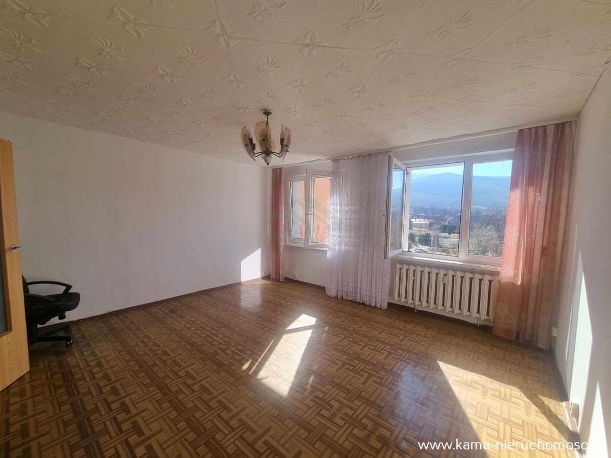 Kama Nieruchomości prezentuje Państwu bardzo słoneczne dwupokojowe mieszkanie z przepięknym widokiem na góry usytuowane na czwartym piętrze czteropiętrowego bloku położonego w spokojnym miejscu Kowar.